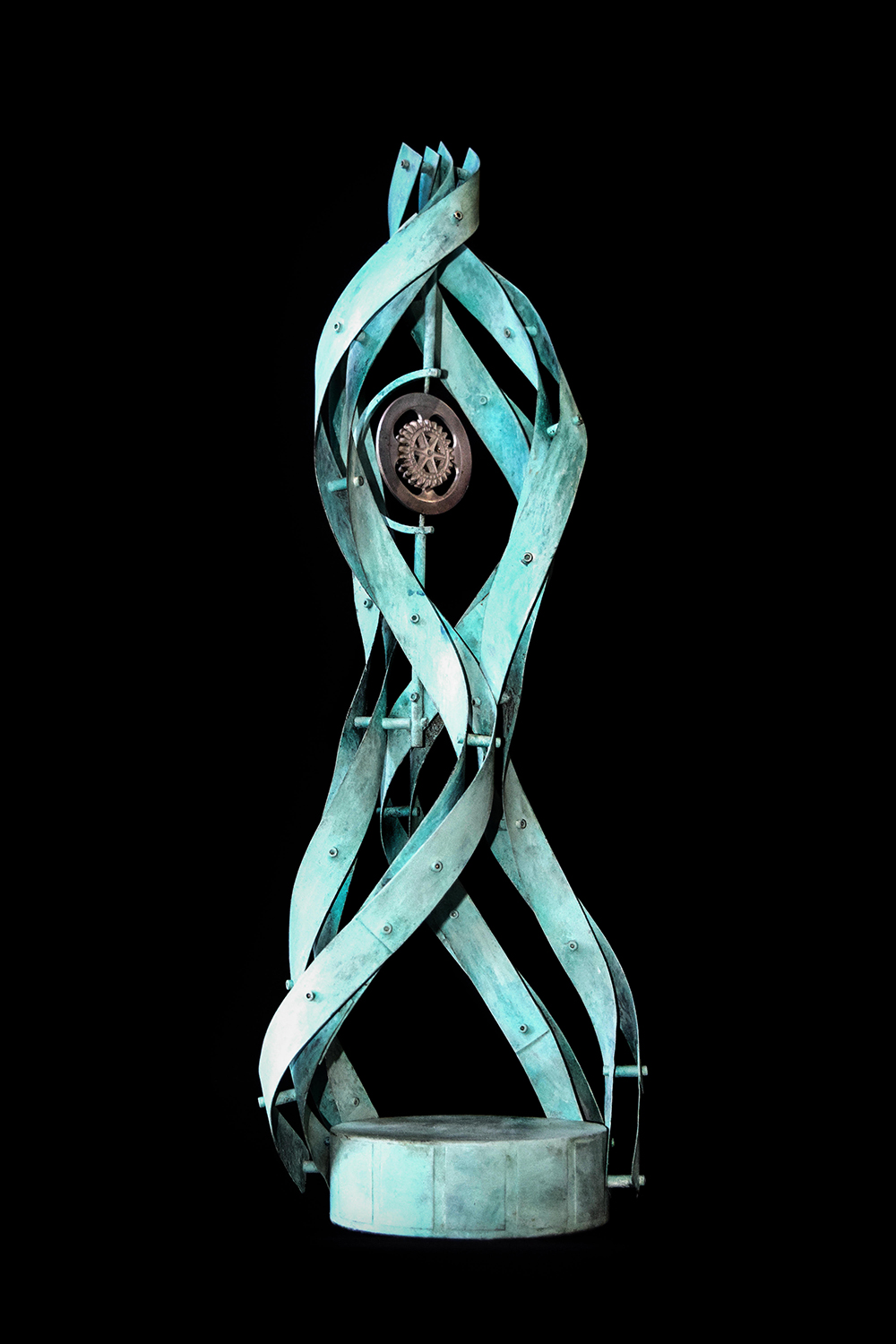 "La escultura de Miguel Peraza, está construida con un sistema de mecánica cuántica, con un método dinámico orbital en tres dimensiones, donde el mensaje se emite por cada uno de los elementos que la conforman en cantidades discretas a lo que en física cuántica se llama cuanto, en su escultura, la luz emitida por las longitudes de onda de los colores utilizados corresponde a frecuencias bien denidas de los cuantos mentales que construyen las diferentes emociones."