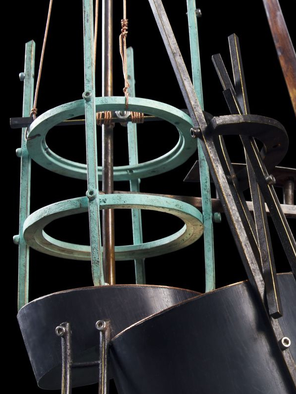 Varilla de polietileno, bronce, lámina de latón, cable de acero. 70 cm.Concejo Coordinador Empresarial (CCE), Ciudad de México, México.